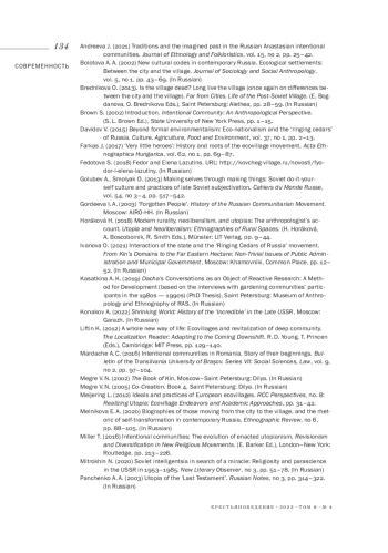 5. Brednikova O. (2013). Is the village dead? Long live the village (once again on differences between the city and the village). Far from Cities. Life of the Post-Soviet Village. (E. Bogdanova, O. Brednikova Eds.), Saint Petersburg: Alethea, pp. 28-59. (In Russian).