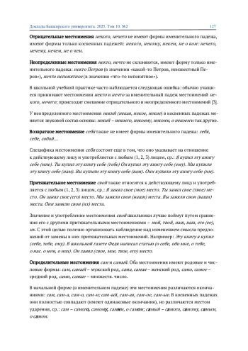 3. Закирьянов К. З. Научные основы школьного предмета “Русский язык” (к формированию лингвистической компетенции учащихся): монография. Уфа: ИРО РБ, 2015. Глава 4, раздел “Местоимение”. С. 113-121.