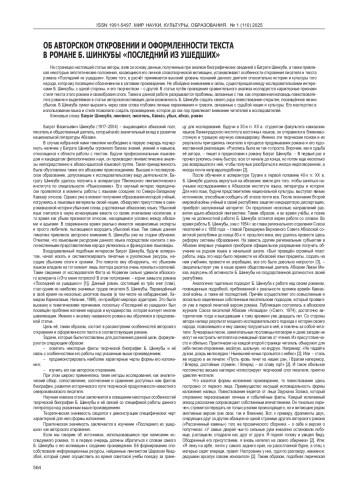 4. Биданок М.М. Роман “Последний из ушедших” Баграта Шинкубы: стиль, мотивы, образы. Мир науки, культуры, образования. 2024; № 6 (109): 609-611. EDN: FODESE