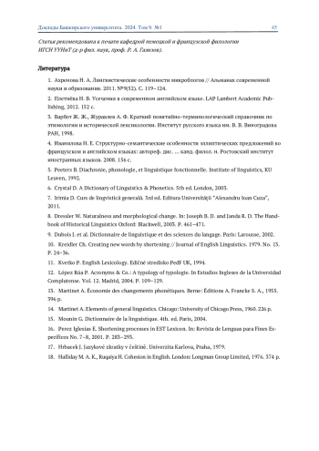 10. Kreidler Ch. Creating new words by shortening // Journal of English Linguistics. 1979. No. 13. Р. 24-36. EDN: JRTNDX