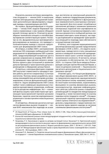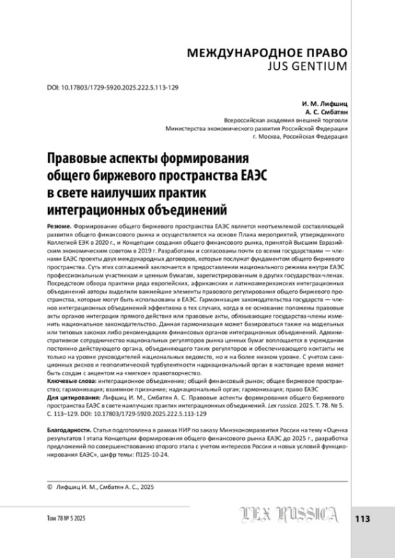 11. Lifshits I., Ponamorenko V. International Financial Standards in the Global Legal Order and in EU and EAEU Law // Russian Law Journal. 2020. No. 8 (3). P. 4-31.