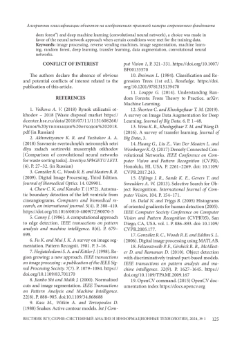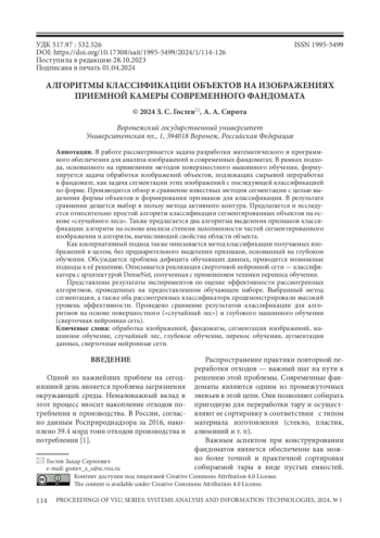 Статья: АЛГОРИТМЫ КЛАССИФИКАЦИИ ОБЪЕКТОВ НА ИЗОБРАЖЕНИЯХ ПРИЕМНОЙ КАМЕРЫ СОВРЕМЕННОГО ФАНДОМАТА (2024)