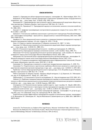 12. Махьянова Р. М. Тактика надзорной деятельности органов прокуратуры : учеб. пособие. М. : Военный университет имени князя Александра Невского Минобороны России, 2023. 108 с.