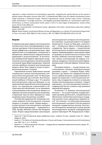9. Фань Ц., Ма Ч. 40 лет системе конституционного надзора в Китае: обзор и осмысление // Академический обмен. 2022. № 12. С. 60-77 (范进学,马冲冲.我国宪法监督制度40年:回顾与反思[J].学术交流, 2022,(12):60-77).