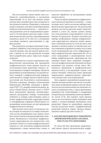 Необходимость автоматической обработки текстовой информации из-за постоянного увеличения ее количества привела к появлению программных продуктов для автоматизации обработки текста на естественном языке. Сложность естественного языка обусловила разделение процесса анализа текста на несколько последовательных этапов - графематического, морфологического, синтаксического и семантического. Точность обработки на каждом из этапов влияет на последующие этапы анализа текста. На морфологическом этапе анализа текста происходит определение для каждого слова морфологических характеристик. Одним из способов проведения морфологического анализа является метод с использованием словаря словоформ. Его преимуществом является высокая точность из-за хранения лексем целиком, что позволяет учитывать исключения, встречающиеся в естественном языке. Однако, сложность постоянной поддержки словаря в актуальном состоянии из-за развития языка, а также встречающиеся в текстах опечатки показывают необходимость наличия в морфологических анализаторах возможности проведения морфологического анализа несловарных слов. В рамках статьи проведен обзор существующих методов морфологического анализа несловарных слов, а также предложен собственный метод обработки неизвестных слов, учитывающий особенности словообразования в русском языке и реализованный в одном из постоянное развивающийся инструмента морфологического анализа JMorfSdk.