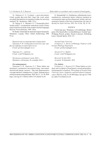 10. Тарасова Д. С. Особенности текстовой макроструктуры и организация номинативный цепочек (на материале инструкции к настольной игре “Die Quacksalber von Quedlinburg”): дипломная работа. Воронеж: ВГУ 2024. 170 с.