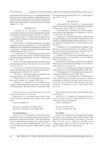 6. Терских М. В. Типология стратегий коммуникативного воздействия в дискурсе социальной рекламы // Научный диалог. 2020. № 4. С. 164-175. EDN: FLJVUI