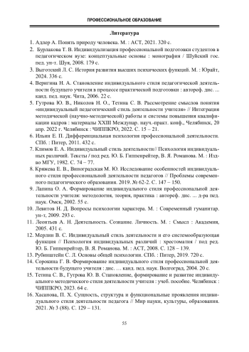 2. Бурлакова Т. В. Индивидуализация профессиональной подготовки студентов в педагогическом вузе: концептуальные основы : монография / Шуйский гос. пед. ун-т. Шуя, 2008. 179 с.