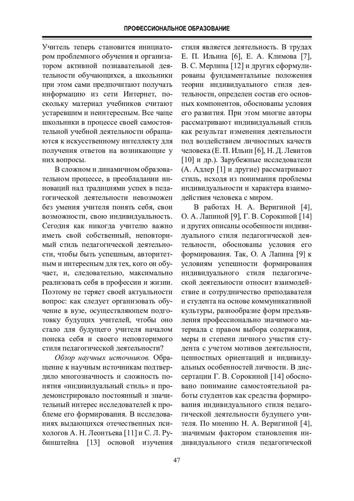 14. Сорокина Г. В. Формирование индивидуального стиля профессиональной деятельности будущего учителя : дис. … канд. пед. наук. Волгоград, 2004. 20 с.
