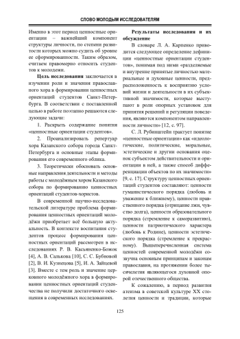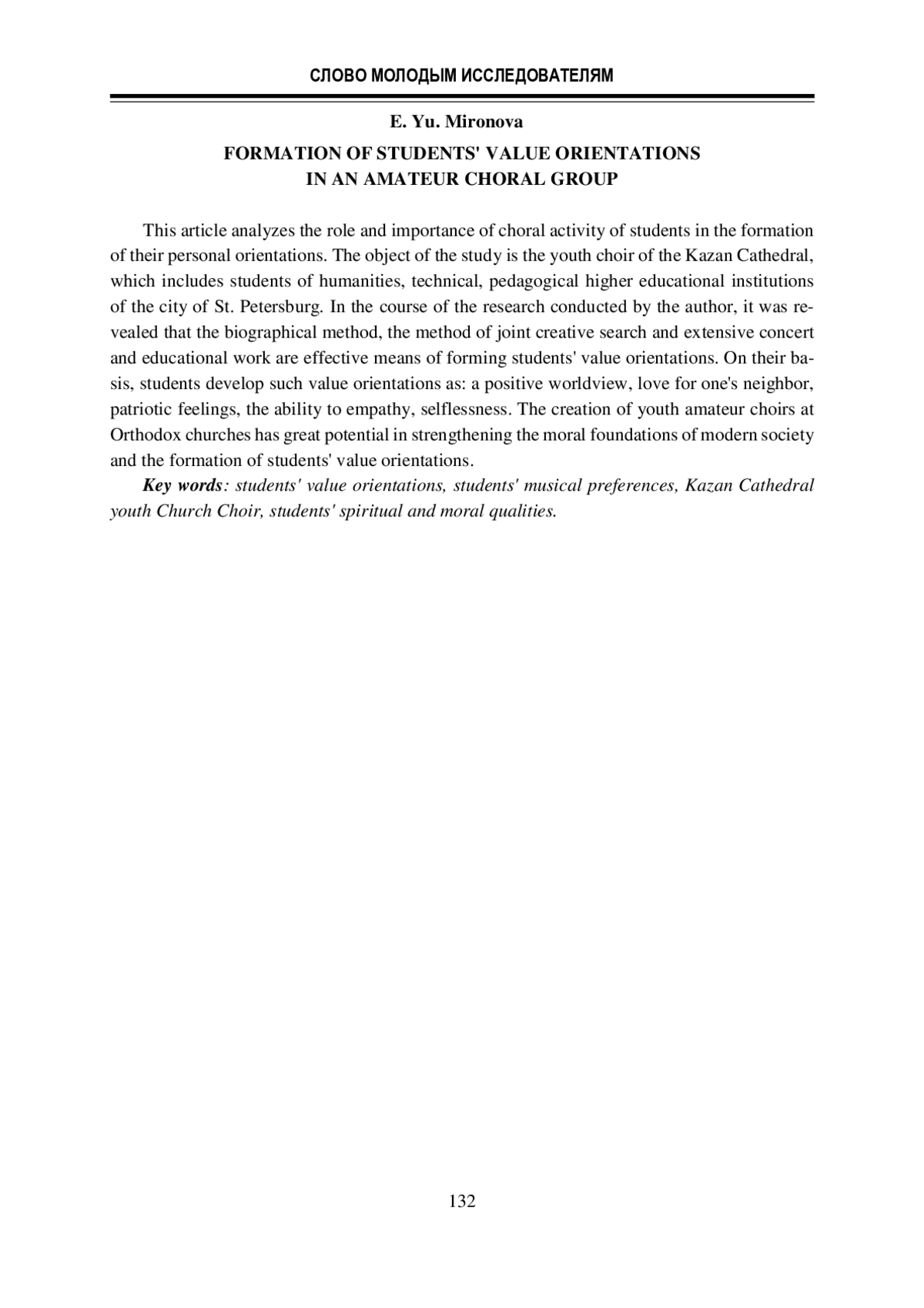 Ключевые фразы: ценностные ориентации студентов, музыкальные предпочтения студентов, молодёжный церковный хор казанского собора, духовно-нравственные качества студентов