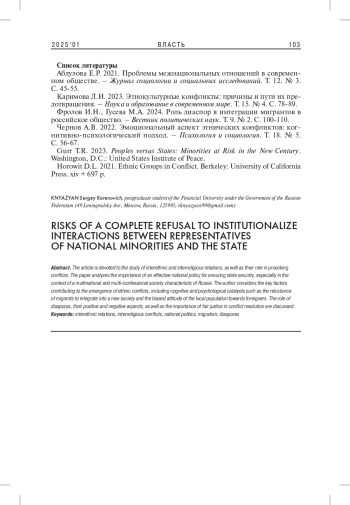 1. Абдулова Е.Р. 2021. Проблемы межнациональных отношений в современном обществе. - Журнал социологии и социальных исследований. Т. 12. № 3. С. 45-55.