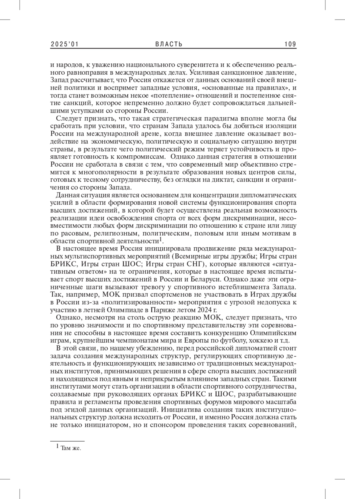 РОМАНОВ В. В. СПОРТИВНАЯ ДИПЛОМАТИЯ ПЕРЕД ВЫЗОВАМИ НОВОГО МИРОВОГО ПОРЯДКА // ВЛАСТЬ. 2025. ТОМ 33 № 1