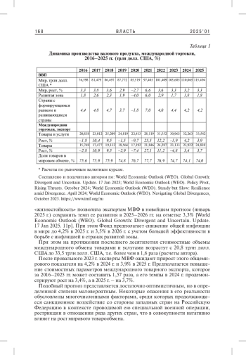 Статья: МИРОХОЗЯЙСТВЕННАЯ ДИНАМИКА И МЕЖДУНАРОДНАЯ ТОРГОВЛЯ: НОВЕЙШИЕ ТРЕНДЫ (2025)