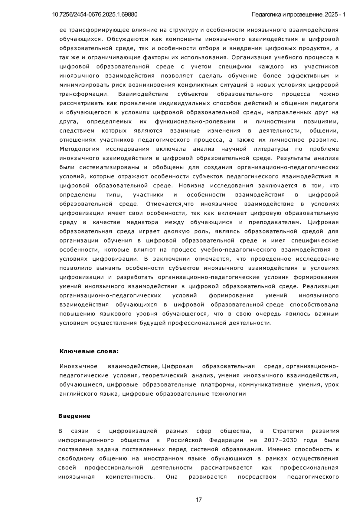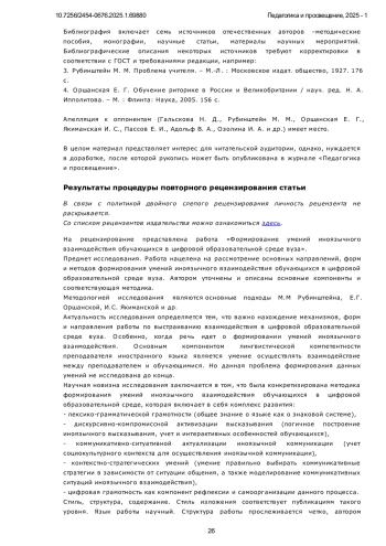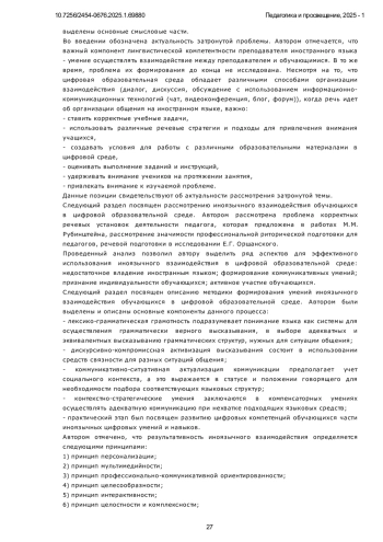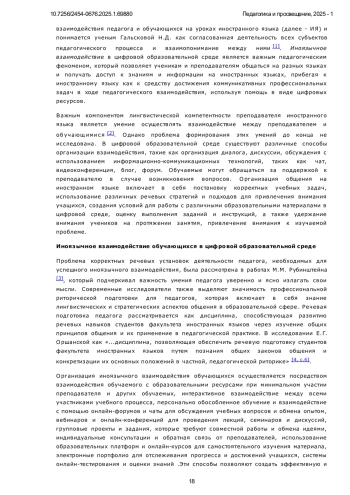 Статья: Формирование умений иноязычного взаимодействия обучающихся в цифровой образовательной среде вуза (2025)