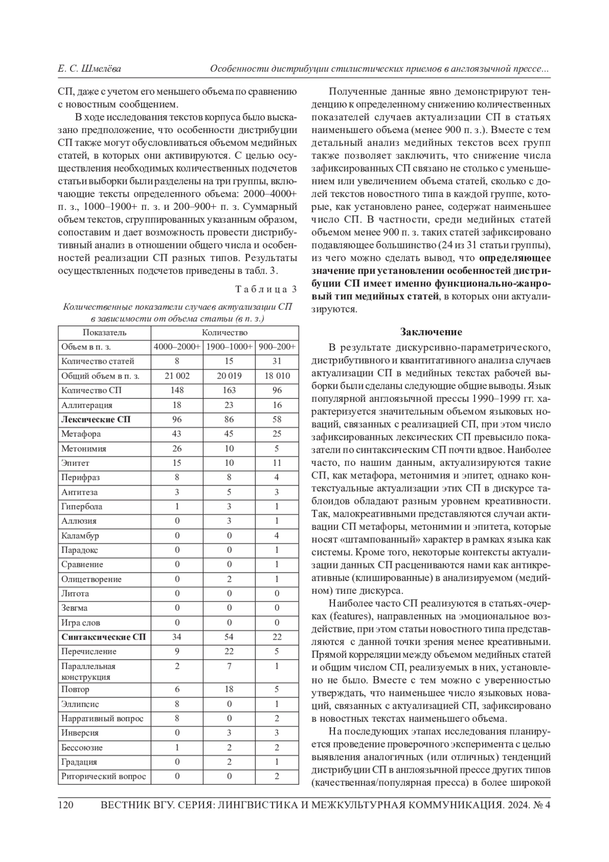 8. Шмелёва Е. С. Лингвокреативный потенциал реализации метафоры и метонимии в медийном дискурсе (на материале англо- и русскоязычных таблоидов 2000-2022 гг. //Когнитивные исследования языка. 2024. № 1-1 (57). С. 99-103. EDN: QMHTEQ