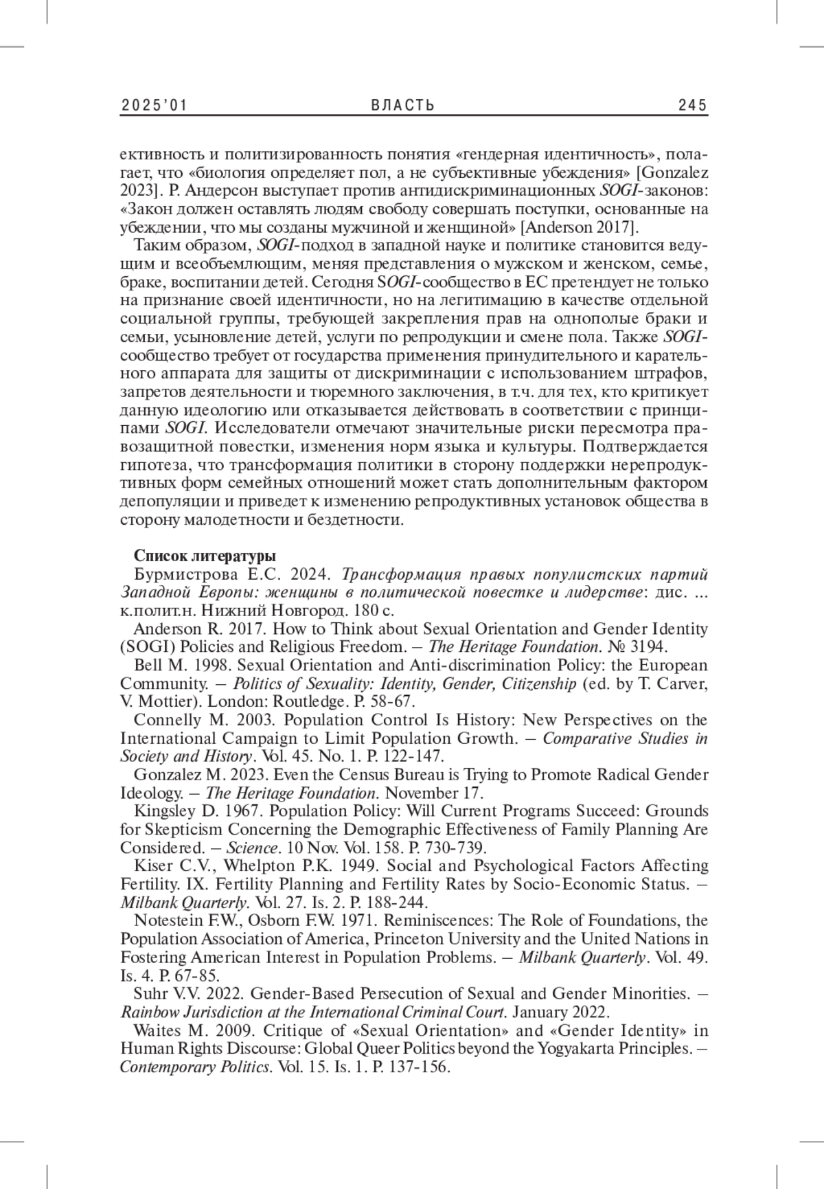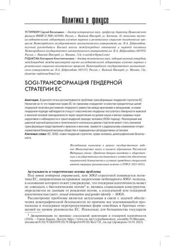 УСТИНКИН С. В., ГАЙКОВИЧ Е. К. SOGI-ТРАНСФОРМАЦИЯ ГЕНДЕРНОЙ СТРАТЕГИИ ЕС // ВЛАСТЬ. 2025. ТОМ 33 № 1