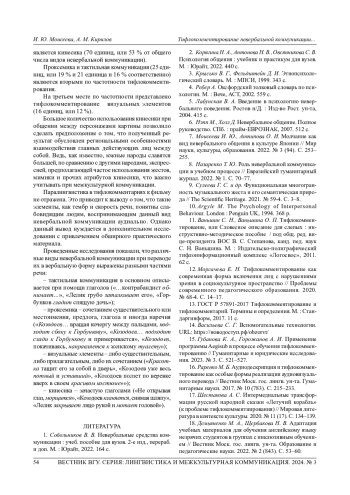 1. Собольников В. В. Невербальные средства коммуникации: учеб. пособие для вузов. 2-е изд., перераб. и доп. М.: Юрайт, 2022. 164 с.