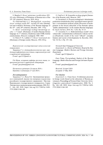 15. Заварзина Г. А. Диахроническая модель слова “чиновник”: семантические особенности и векторы развития // Русистика. 2021. Vol. 19, № 2. С. 155-166. EDN: GTHFOT