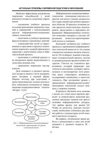 3. Сердюк Н. И. Информационно-коммуникативные технологии в образовательном процессе как средство развития творческих способностей младших школьников. URL: https://infourok.ru/statya-informacionno-kommunikativnyetehnologii-v-obrazovatelnom-processe-kak-sredstvo-razvitiya-tvorcheskih-sposobnostej-mladsh-4661689.html (дата обращения: 12.09.2024).