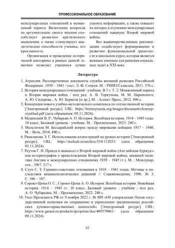 Необходимо также отметить, что в Историко-культурном стандарте по отечественной истории, где вышеуказанная тема отнесена к разделу VI «Советское общество в 1920 – 1930-е гг.» в подразделе «Внешняя политика СССР в 1930-е годы», имеется список «трудных вопросов истории», один из которых – «оценка внешней политики СССР накануне и в начале Второй мировой войны» [3].