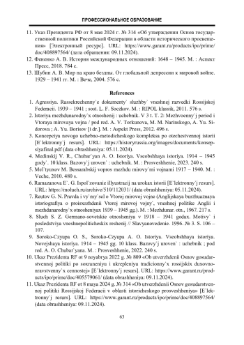 11. Указ Президента РФ от 8 мая 2024 г. № 314 «Об утверждении Основ государственной политики Российской Федерации в области исторического просвещения» [Электронный ресурс]. URL: https://www.garant.ru/products/ipo/prime/doc/408897564 (дата обращения: 09.11.2024).