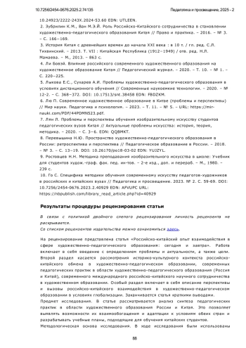 2. Зубрилин К.М., Ван М.Э.Й. Роль Российско-Китайского сотрудничества в становлении художественно-педагогического образования Китая // Право и практика. - 2016. - № 3. - С. 166-169. EDN: WLBICF