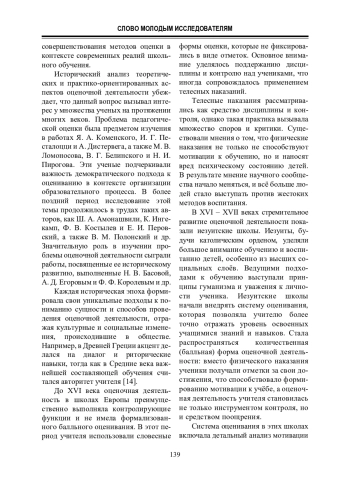 12. Разливинских И. Н., Стерхова Н. С., Оленькова Н. В., Осипова Я. У. Исторический анализ проблемы контроля и оценивания результатов учебной деятельности младших школьников // Вестник Шадринского государственного педагогического университета. 2023. № 4 (60). С. 25 - 35.