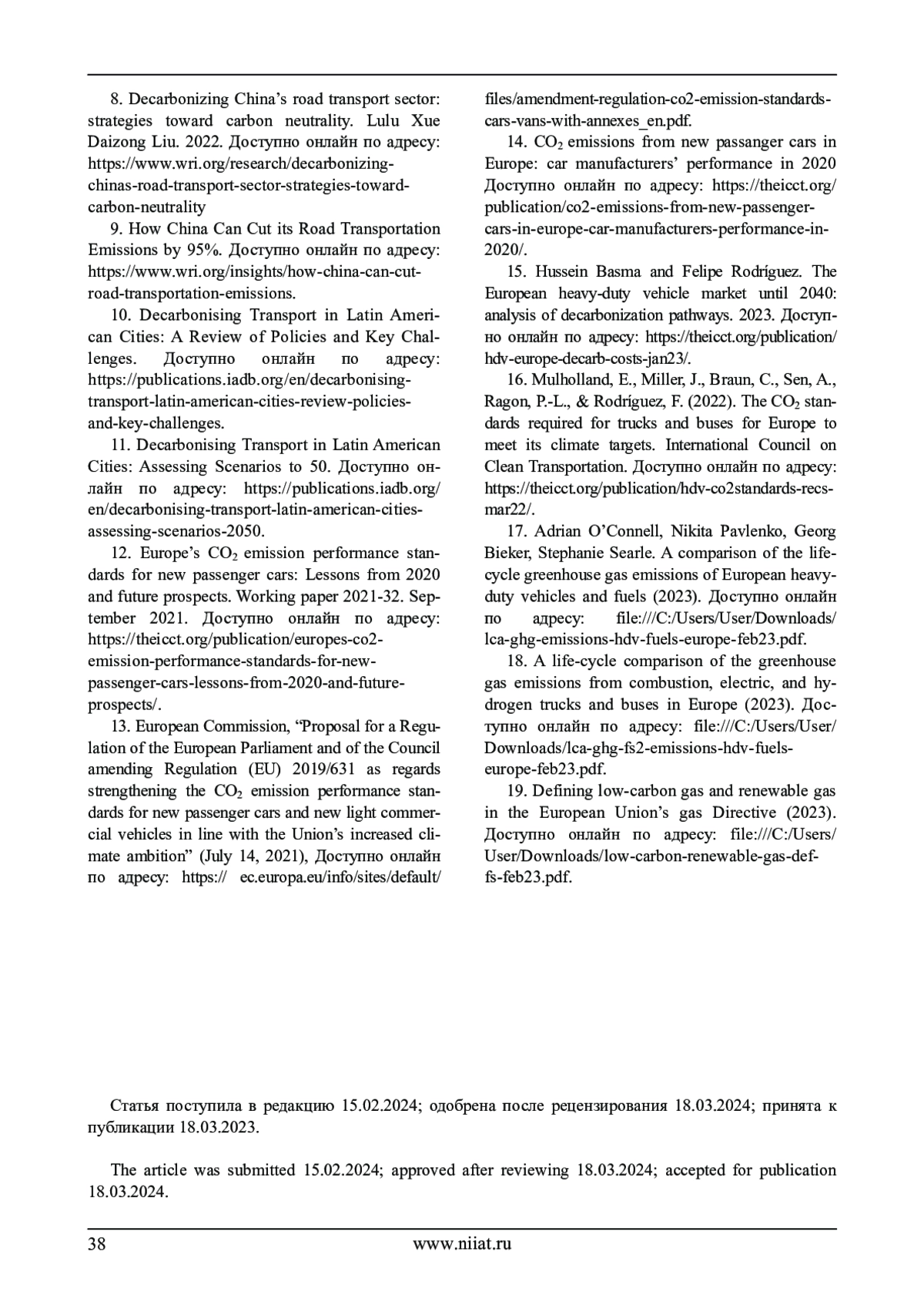 17. Adrian O’Connell, Nikita Pavlenko, Georg Bieker, Stephanie Searle. A comparison of the lifecycle greenhouse gas emissions of European heavyduty vehicles and fuels (2023). Доступно онлайн по адресу: file:///C:/Users/User/Downloads/ lca-ghg-emissions-hdv-fuels-europe-feb23.pdf.