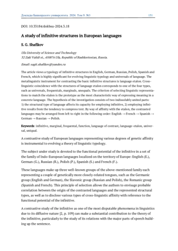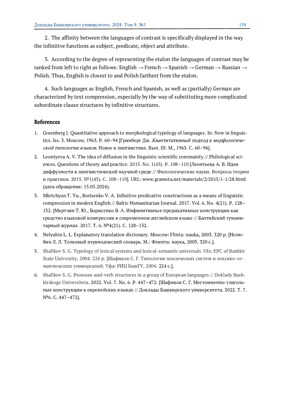 6. Shafikov S. G. Pronoun-and-verb structures in a group of European languages // Doklady Bashkirskogo Universiteta. 2022. Vol. 7. No. 6. P. 447-472. EDN: WWKEZZ