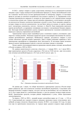 В 2022 г. импорт товаров в страну существенно изменился из-за санкционной политики западных стран. Страну покинули 46 автомобильных брендов [1]. Рынок автомобильной техники и запасных частей всегда состоял преимущественно из импортных товаров, и в настоящее время их доставка до конечного потребителя стала дольше и дороже [2; 3]. Традиционно отечественные производители занимали от четверти до трети рынка за счет заградительных пошлин и относительно низких цен. Однако при изготовлении современного отечественного автомобиля используется большое количество импортных деталей и узлов. После введения санкций некоторые товары не исчезли одномоментно, так как были запасы на складах, но другие, прежде всего электронные компоненты, исчезли. «Автоваз» и «КамАЗ» были вынуждены выпускать партии автомобилей с устаревшими топливными системами и электронными блоками управления. Благодаря импортозамещению удалось наладить производство отдельных компонентов и вернуться к выпуску современных автомобилей