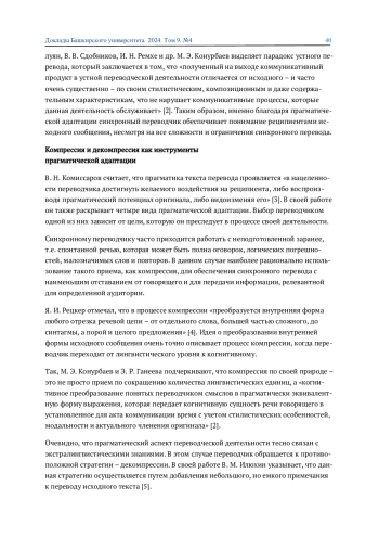 2. Конурбаев М. Э., Ганеева Э. Р. Когнитивные основы речевой компрессии в устном переводе // Вопросы когнитивной лингвистики. 2024. №2. С. 24-32. EDN: RZOWZR
