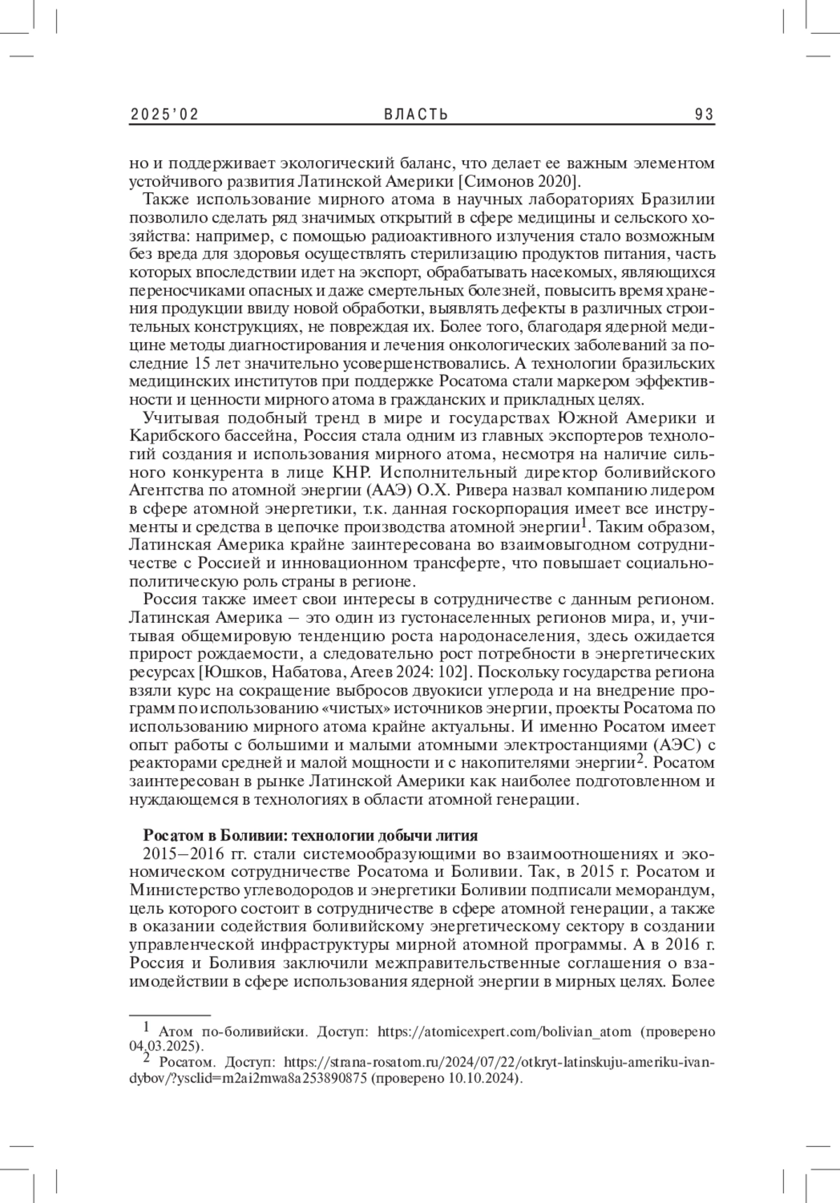 6. Яковлев П.П. 2019. Атомный век Аргентины (к 45-летию ввода в строй АЭС Atucha). - Латинская Америка. № 3. C. 5-17. EDN: YZAFBZ