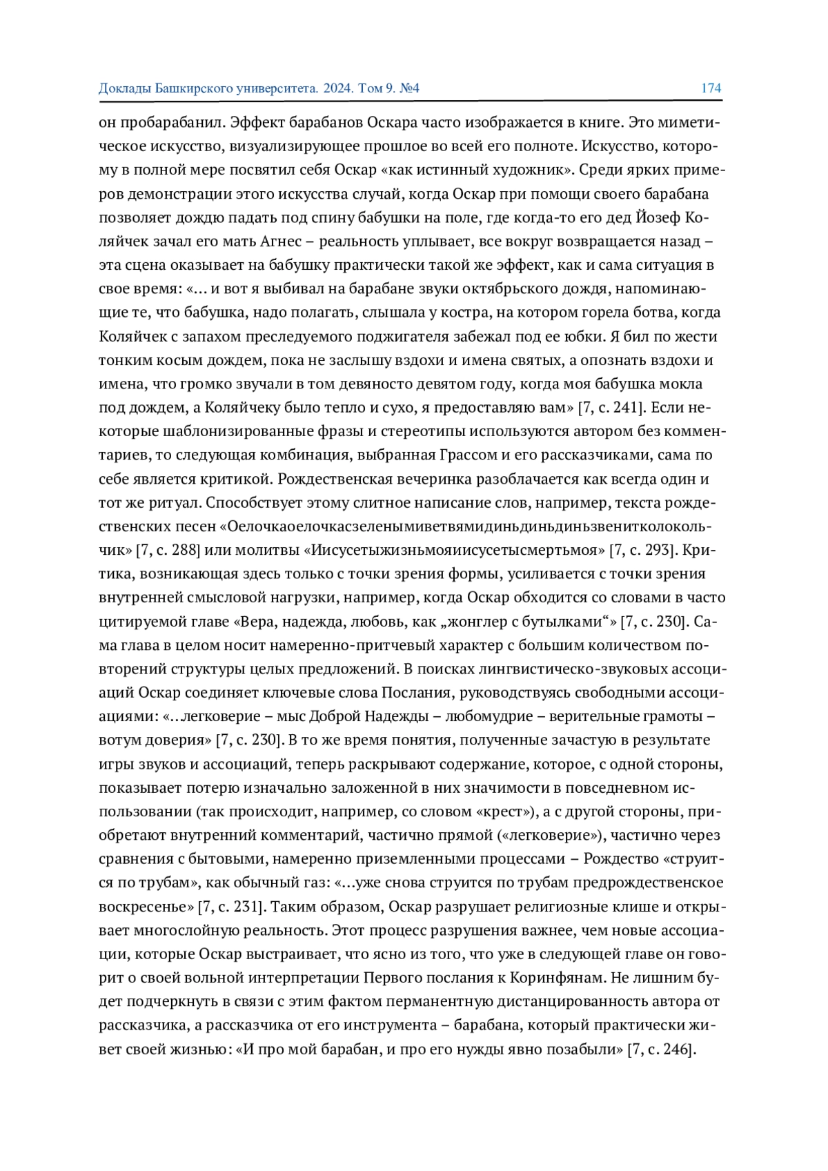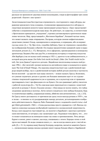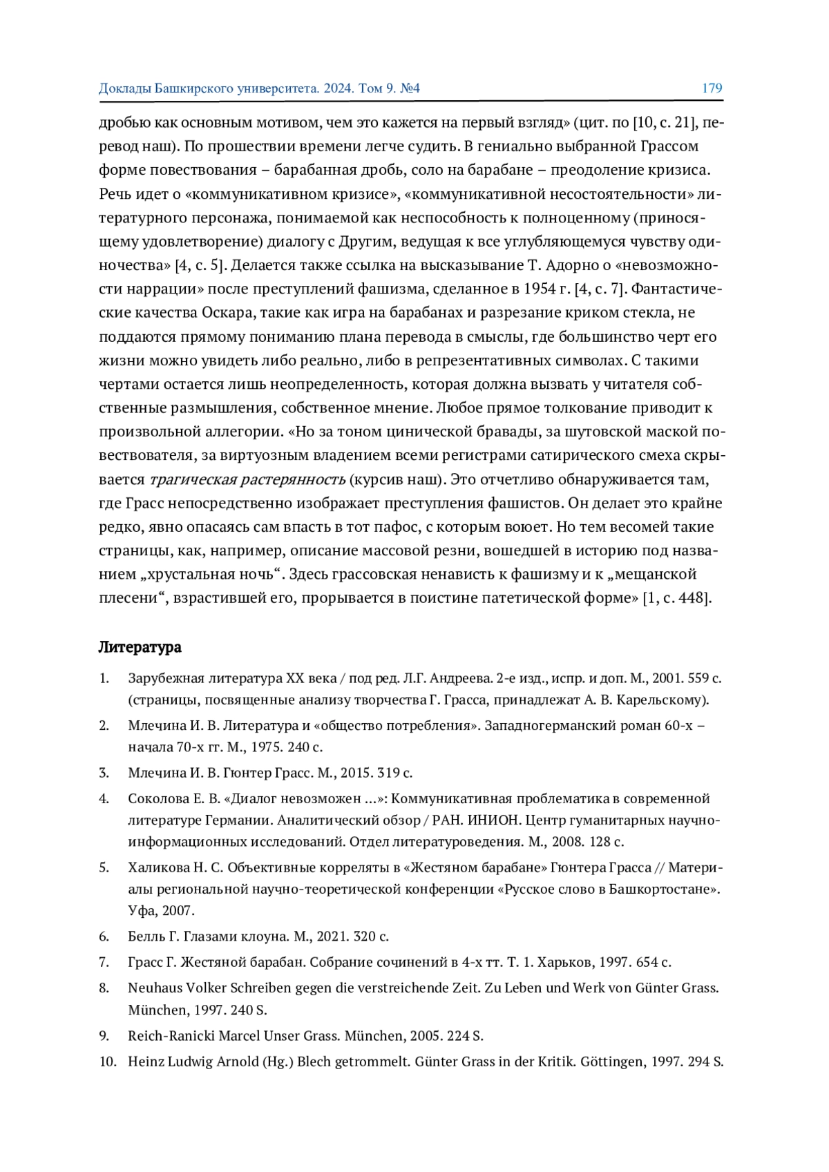 ХАЛИКОВА Н. С., БАГМАНОВА С. В. СПОСОБЫ ВЫРАЖЕНИЯ МОТИВА ЭКЗИСТЕНЦИОНАЛЬНОГО ОДИНОЧЕСТВА В РОМАНЕ ГЮНТЕРА ГРАССА "ЖЕСТЯНОЙ БАРАБАН" // ДОКЛАДЫ БАШКИРСКОГО УНИВЕРСИТЕТА. 2024. Т. 9 № 4