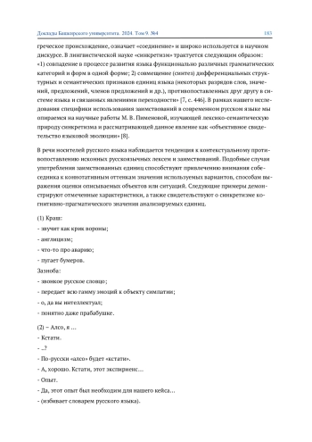 6. Хрущева О. А. Синкретизм значения заимствованного слова // Когнитивные исследования языка. 2024. Вып. 5(61): Когнитивные описания языка: концепции, методы, процедуры: мат-лы круглого стола, Москва, 31 окт. - 1 нояб. 2024 г. / гл. ред. вып. О. К. Ирисханова. Тамбов: изд. дом “Державинский”. С. 211-215. EDN: ZIDWLN