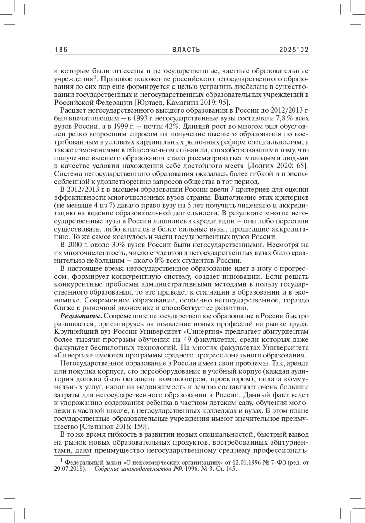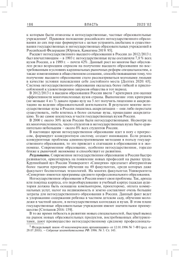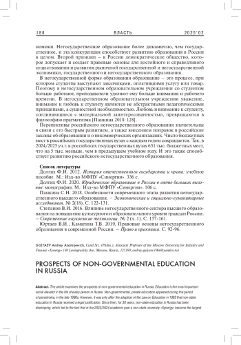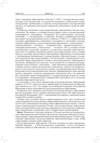 ГУЛЯЕВ А. А. ПЕРСПЕКТИВЫ НЕГОСУДАРСТВЕННОГО ОБРАЗОВАНИЯ В РОССИИ // ВЛАСТЬ. 2025. ТОМ 33 № 2