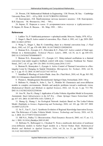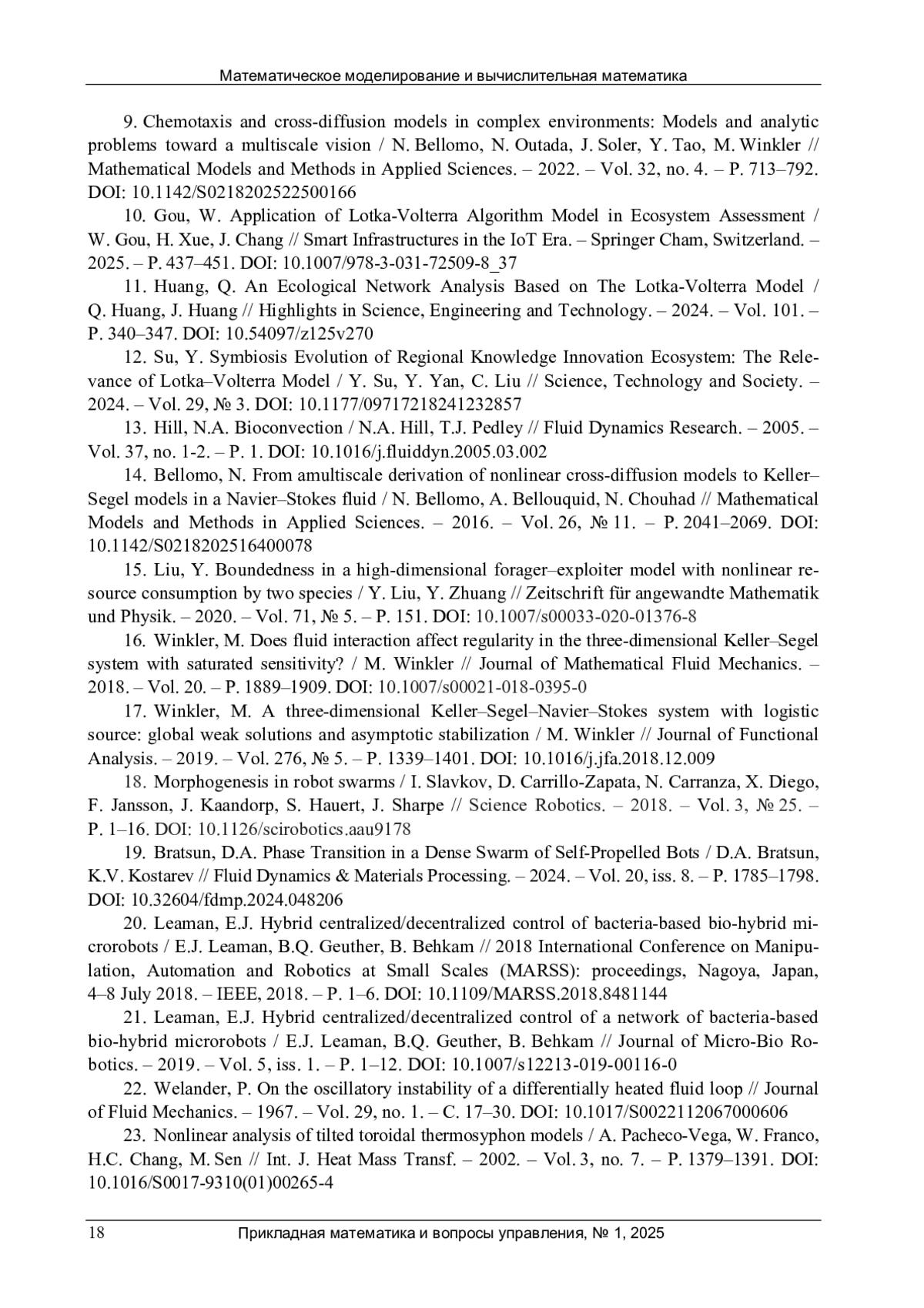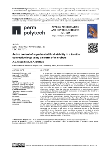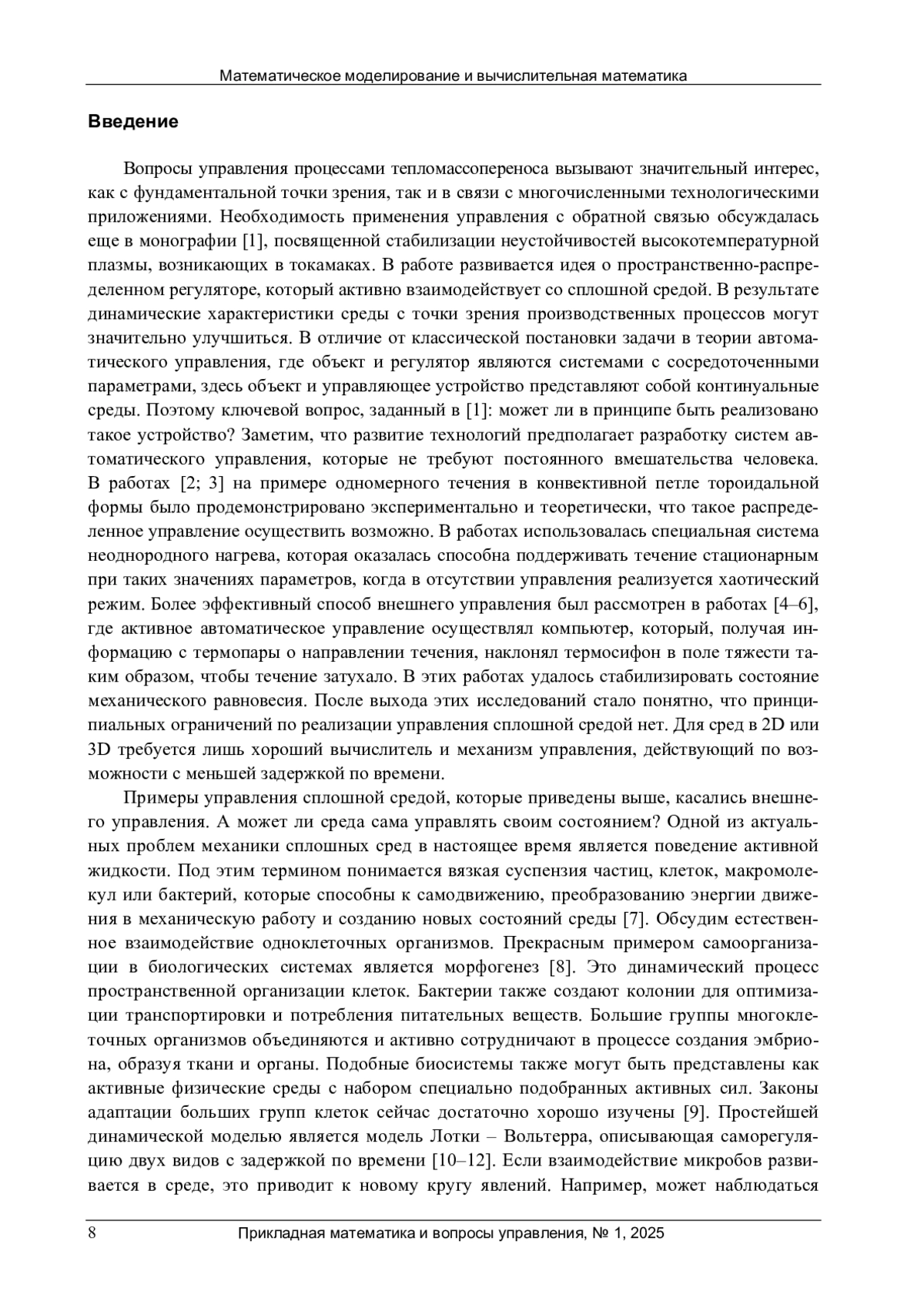 СТУПНИКОВА А. В., БРАЦУН Д. А. УПРАВЛЕНИЕ УСТОЙЧИВОСТЬЮ ПЕРЕГРЕТОЙ ЖИДКОСТИ В ТОРОИДАЛЬНОЙ КОНВЕКТИВНОЙ ПЕТЛЕ С ПОМОЩЬЮ РОЯ МИКРОБОТОВ // ПРИКЛАДНАЯ МАТЕМАТИКА И ВОПРОСЫ УПРАВЛЕНИЯ. 2025. № 1