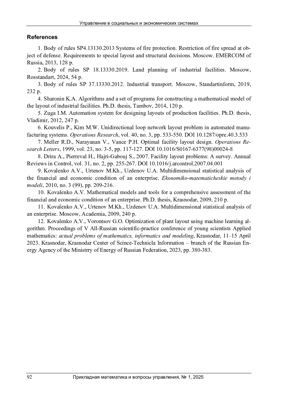 12. Коваленко, А.В. Оптимизация компоновки завода с помощью алгоритма машинного обучения / А.В. Коваленко, Г.О. Воронцов // Прикладная математика: современные проблемы математики, информатики и моделирования: мат. V Всероссийской научно-практической конференции молодых ученых, Краснодар, 11-15 апреля 2023 года. - Краснодар: ФГБУ “Российское энергетическое агентство” Минэнерго России Краснодарский ЦНТИ - филиал ФГБУ “РЭА” Минэнерго России, 2023. - С. 380-383. EDN: AJOFFY