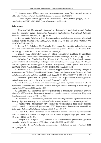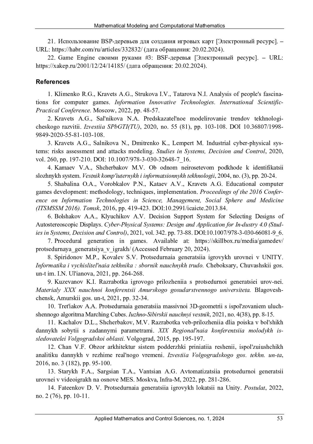 13. Старых, Ф.А. Автоматизация процедурной генерации уровней в видеоиграх на основе МЭС / Ф.А. Старых, Т.А. Саргсян, А.Г. Ванцян. - М.: Инфра-М, 2022. - С. 281-286. EDN: RVYPTY