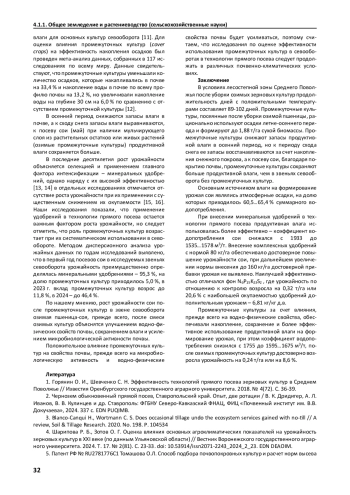 5. Патент РФ № RU2781776C1 Томашова О.Л. Способ подбора почвопокровных культур и расчет норм высева //Патент России от 18.10.2022 Бюл. № 29.