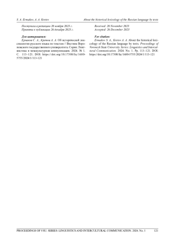 Статья посвящена вопросу языкового оформления идеологем, возникших в период проведения Россией специальной военной операции (СВО). Предметом изучения стали устойчивые выражения (УВ), послужившие основой для идеологем. Исследование проведено с целью установления принципов отбора, возникновения и использования устойчивых выражений периода СВО, выполняющих функцию идеологем. В процессе работы выявлен массив идеологем из массмедийного и политического дискурса, установлен их состав и проведено лингвистическое описание, выполнен этимологический и стилистический анализ устойчивых выражений-идеологем. При исследовании сделаны следующие выводы: во-первых, устойчивые выражения в функции идеологем служат для реализации коннотативного значения (выражают отношение, эмоции, оценки, ассоциации говорящих или пишущих). Во-вторых, если в качестве идеологем используются традиционные УВ (прецедентные тексты, образы, имена), то их состав отличается специфическим содержанием сообразно времени и ситуации общения. Это направленность на патриотизм, общие ценности (историю, язык, культуру), разграничение на своих и чужих, друзей и врагов. В-третьих, отмечено активное использование приобретающих устойчивость новообразованных идеологем-выражений, отражающих новые реалии. Их источником, как правило, становится профессиональный военный, политический или журналистский жаргон, устойчивые терминологические выражения, крылатые фразы или высказывания известных людей. В настоящее время языковой процесс появления новых идеологем-выражений (УВ) стремительно развивается, о чем свидетельствует быстротечное изменение их тематики. В целом изучение устойчивых выражений-идеологем является важной составной частью такой эволюционирующей в настоящее время области языкознания, как политическая лингвистика.