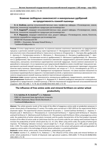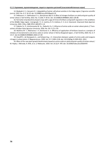 Статья: ВЛИЯНИЕ СВОБОДНЫХ АМИНОКИСЛОТ И МИНЕРАЛЬНЫХ УДОБРЕНИЙ НА ПРОДУКТИВНОСТЬ ОЗИМОЙ ПШЕНИЦЫ (2025)