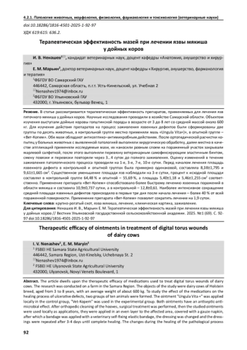 15. Толкачёв В. В., Анденко В. Эффективность лечения коллагеновой мазью гнойно-некротических язв мякиша у коров // Роль аграрной науки в устойчивом развитии АПК. 2022. C. 119-124.