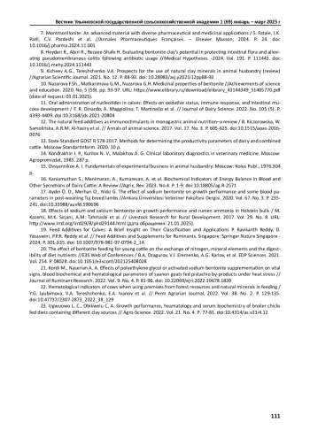 17. Aydin O. D., Merhan O., Yildiz G. The effect of sodium bentonite on growth performance and some blood parameters in post-weaning Tuj breed lambs //Ankara Universitesi Veteriner Fakultesi Dergisi. 2020. Т. 67. No. 3. P. 235241. DOI: 10.33988/auvfd.590696 EDN: ICHGOC