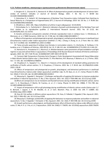 9. Effects of temperature and photoperiod on growth, physiological, and behavioral performance in steelhead trout (Oncorhynchus mykiss) under indoor aquaculture condition / Z. Ma, J. Zhang, X. Zhang, et al. // Front. Mar. Sci. 2023. Vol. 10. P. 1114662. DOI: 10.3389/fmars.2023.1114662 EDN: MMLECI