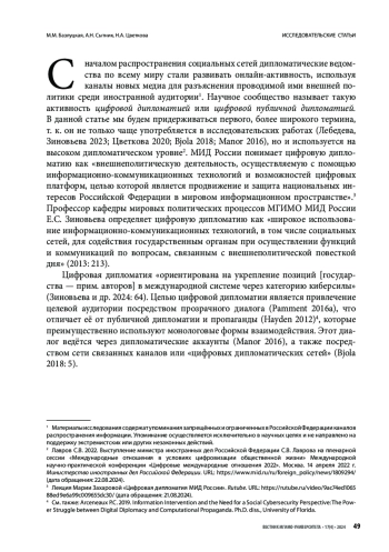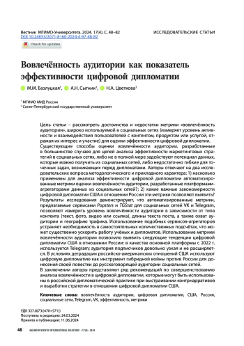 Статья: Вовлеченность аудитории как показатель эффективности цифровой дипломатии (2024)