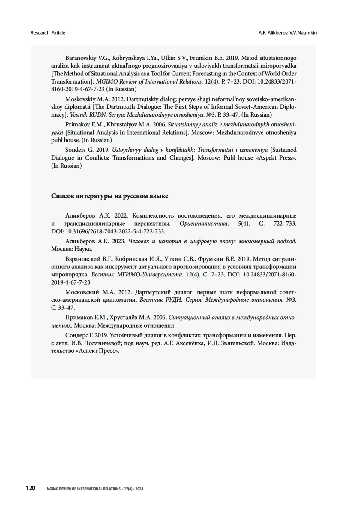 8. Аликберов А.К. 2022. Комплексность востоковедения, его междисциплинарные и трансдисциплинарные перспективы. Ориенталистика. 5(4). С. 722-733. https://doi.org/10.31696/2618-7043-2022-5-4-722-733.