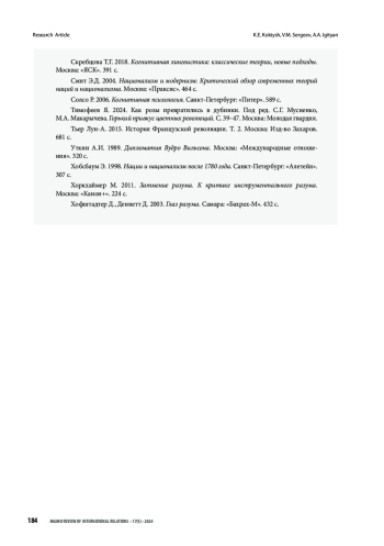 8. King J. 2021. The International Politics of Amour Propre: Revisiting Rousseau’s Place in International Relations Theory. Journal of International Political Theory. №18. P. 167-185. https://doi.org/10.1177/1755088220983832.