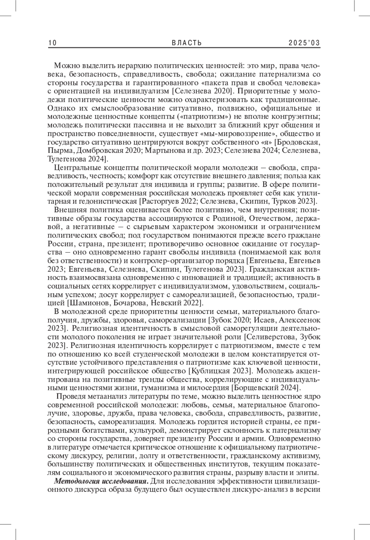 16. Селезнева А.В. 2024. Политические ценности российской молодежи: традиционные смыслы в современных условиях. - Вестник Томского государственного университета. Философия. Социология. Политология. № 77. С. 275-289. DOI: 10.17223/1998863X/77/23