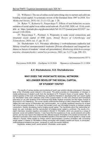 Статья: ПОЧЕМУ СОЦИАЛЬНАЯ СЕТЬ «ВКОНТАКТЕ» УЖЕ НЕ РАЗВИВАЕТ СОЦИАЛЬНЫЙ КАПИТАЛ СТУДЕНЧЕСКОЙ МОЛОДЕЖИ? (2025)