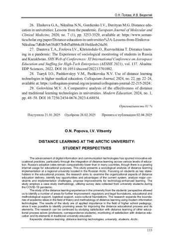 Статья: ОРГАНИЗАЦИЯ ДИСТАНЦИОННОГО ОБУЧЕНИЯ В АРКТИЧЕСКОМ ВУЗЕ В ОЦЕНКАХ СТУДЕНЧЕСКОЙ МОЛОДЕЖИ (2025)